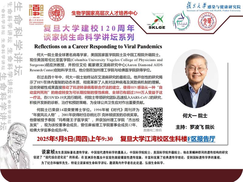 谈家桢生命科学讲坛-2025-05-08(周四)9:30,何大一 院士(美国哥伦比亚医学院)