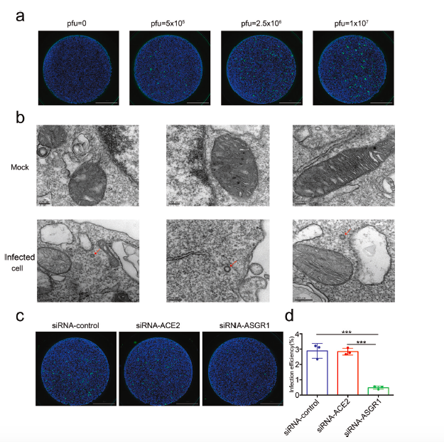 图2:在正常肝实质细胞中证实ASGR1是新冠病毒不依赖于ACE2的潜在的感染受体