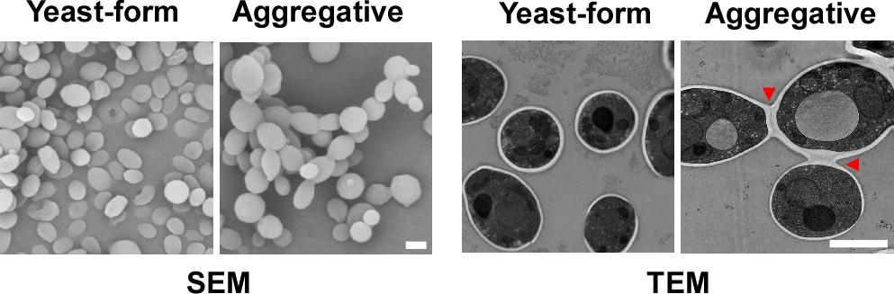 图1. 耳念珠菌的单细胞酵母形态和多细胞聚集形态