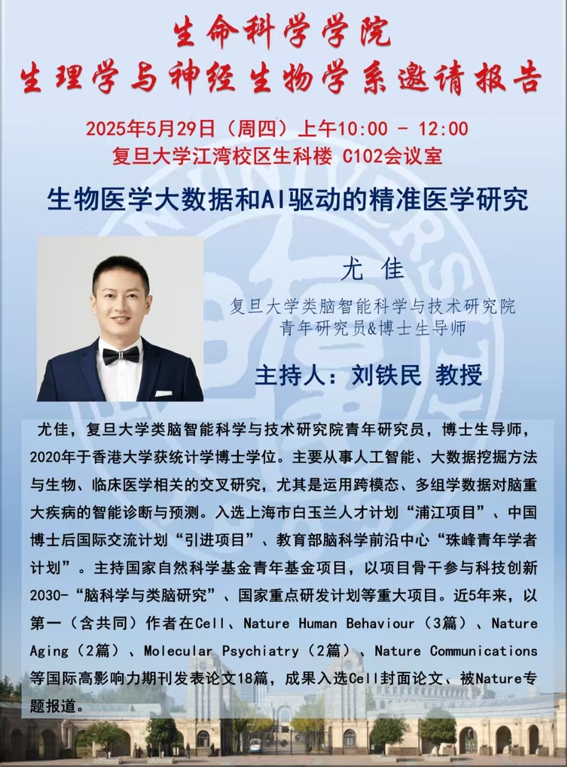 学系邀请报告-2025-05-29(周四) 10:00,尤 佳 青年研究员( 风车动漫 类脑智能科学与技术研究院)