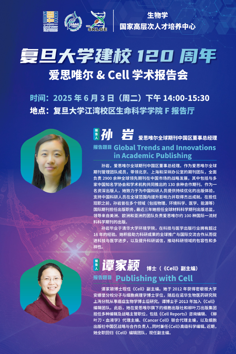 爱思唯尔&Cell 学术报告会-2025-06-03(周二)14:00,Jiaying Tan(CELL主刊副主编)