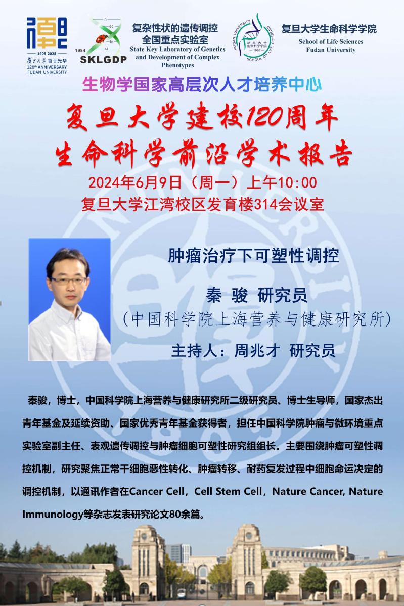 生命科学前沿学术报告-2025-06-09(周一)上午10:00,秦 骏 研究员 (中国科学院上海营养与健康研究所)