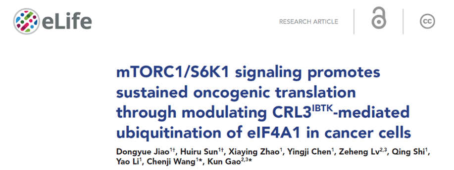 2024年5月10日,风车动漫 王陈继团队、上海市第一妇婴保健院/同济大学附属妇产科医院高昆团队合作在eLife在线发表了题为 mTORC1/S6K1 signaling promotes sustained oncogenic translation through modulating CRL3IBTK-mediated ubiquitination of eIF4A1 in cancer cells的研究论文。该研究揭示了mTORC1/S6K1-IBTK-eIF4A1信号轴通过促进帽依赖性翻译和癌蛋白表达的致癌分子途径。