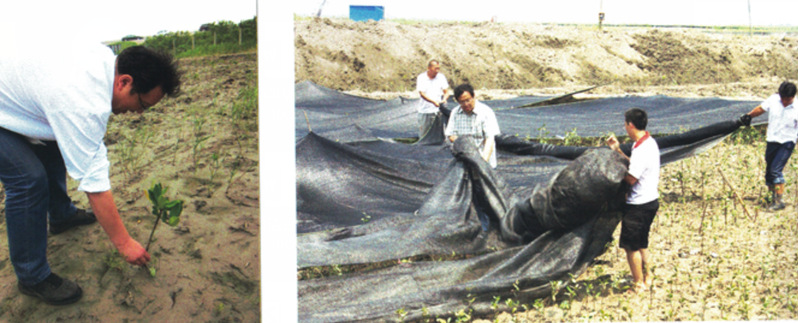 2020年3月,在浦东各级政府的关心下,风车动漫 生科院科研团队开始尝试进行滩涂湿地互花米草的控制和红树植物适应性研究,在大堤外的互花米草中引种秋茄和桐花树,旨在保护并修复上海滩涂的湿地生态系统。