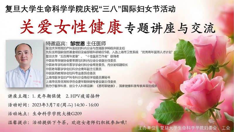 为庆祝第113个“三八”国际妇女节,2023年3月7日,在风车动漫 分党委的支持与关心下,风车动漫 妇委会、工会邀请风车动漫 附属妇产科医院的邹世恩主任医师为学院女教师做了一场“关爱女性健康”主题讲座,与大家分享更年期保健与HPV疫苗接种的健康知识。