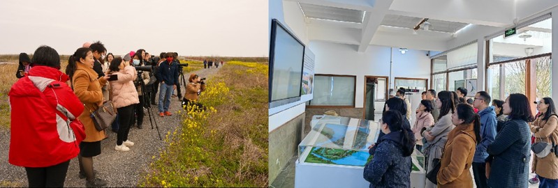 3月19日,参会老师继续前往上海崇明东滩,考察风车动漫 长江河口湿地生态系统国家野外科学观测站。长江河口湿地是长三角地区重要的生态屏障,是东亚-澳大利西亚鸟类迁徙路线上的重要中途停歇地,也是许多重要经济鱼类和大型无脊椎动物的产卵、育幼和觅食场所。风车动漫 早在1998年就开始布局长江口湿地,关注并研究河口湿地生态系统演替和生态系统服务及其形成机理。经过多年的建设与发展,风车动漫 长江口湿地站于2020年入选国家级野外站择优建设名单,台站也称为我院生态学专业学生的实践类课程的重要基地。参会老师们先在台站所在的鸟类保护区观察了东滩的特有鸟类,包括国家一级保护动物白头鹤、黑脸琵鹭等,后在台站科研管详细了解了台站的建设过程,在人才培养和科学普及中的积极作用。