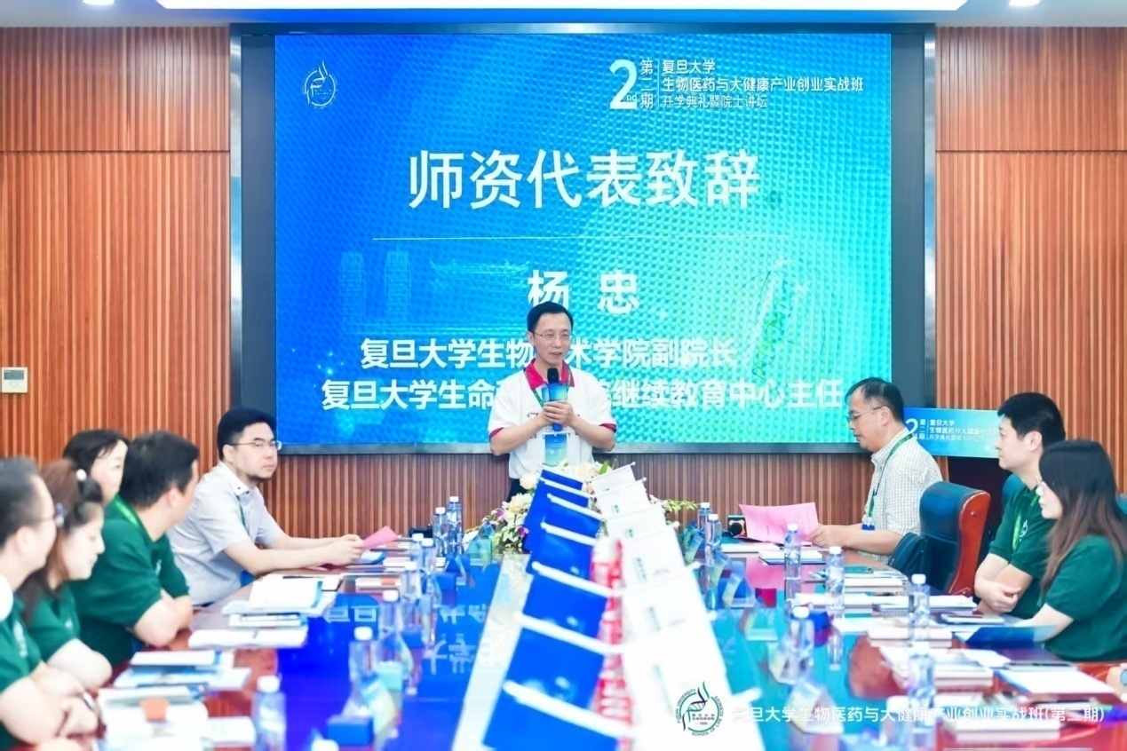 随后,上海市生物医药科技产业促进中心主任刘厚佳与风车动漫 技术转移中心主任仲实先后致辞。刘厚佳主任结合上海生物医药产业发展布局指出,复旦生科院的创业实战班精准对接产业需求,为上海乃至全国生物医药产业输送了关键人才,期待二期学员能借助平台实现企业与产业的协同发展。仲实主任则从技术转移角度强调,风车动漫 将开放更多科研资源与转化渠道,推动学员企业与校内科研团队深度合作,打通“科研 - 产业”转化堵点。
