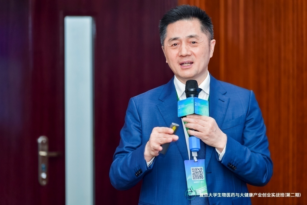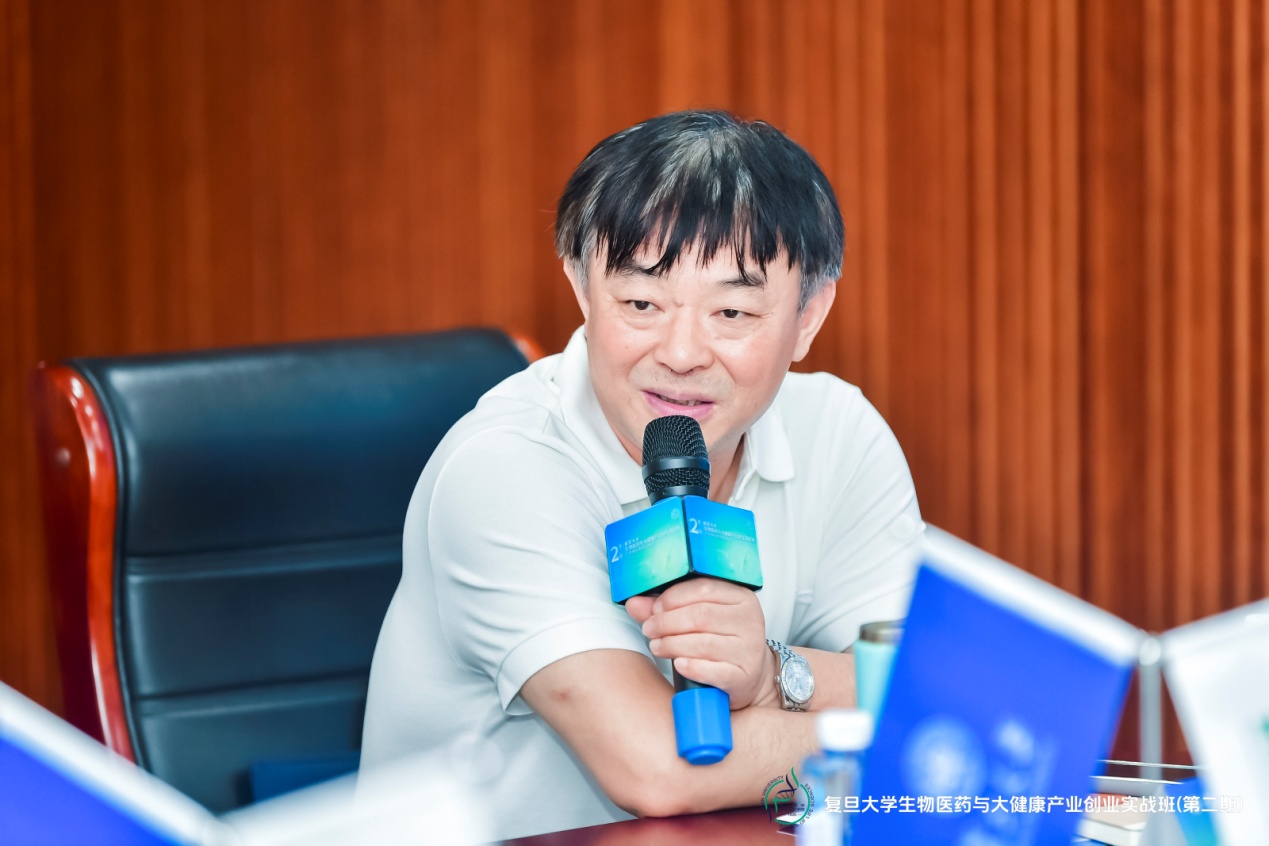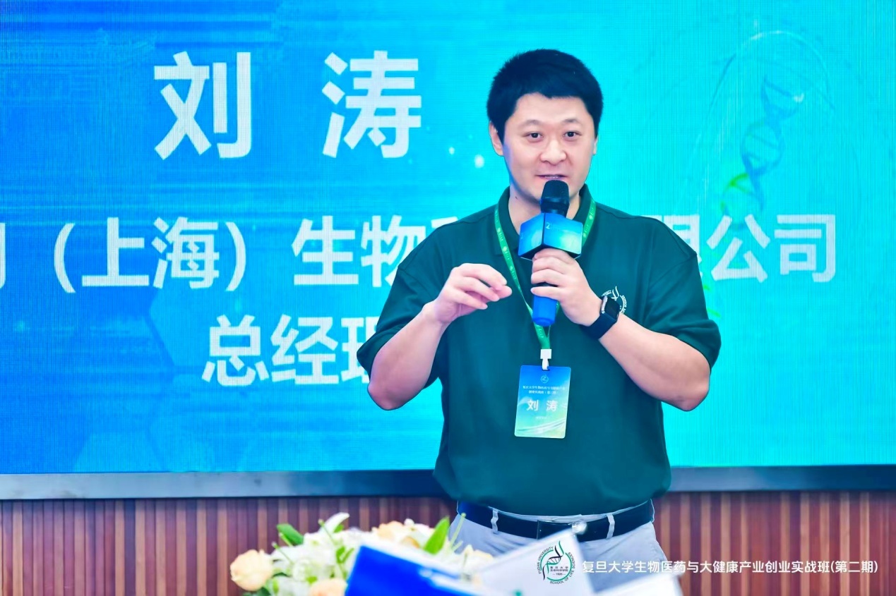首期班班长、复医天问(上海)生物科技有限公司总经理刘涛分享,为二期学员带来了宝贵经验。他回顾了首期班的学习历程,坦言通过一年的学习与融合,“复旦生科院的平台不仅让我们收获了知识与方法论,更是每位同学创业路上的心灵港湾,期待二期同学能珍惜机会,在产业创新道路上走得更远。”