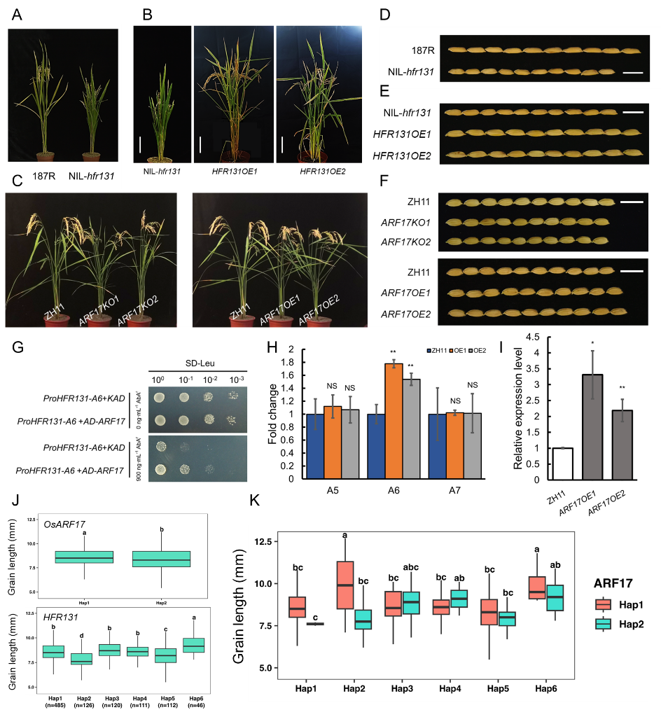 OsARF17-HFR131协同调控水稻株高和粒长