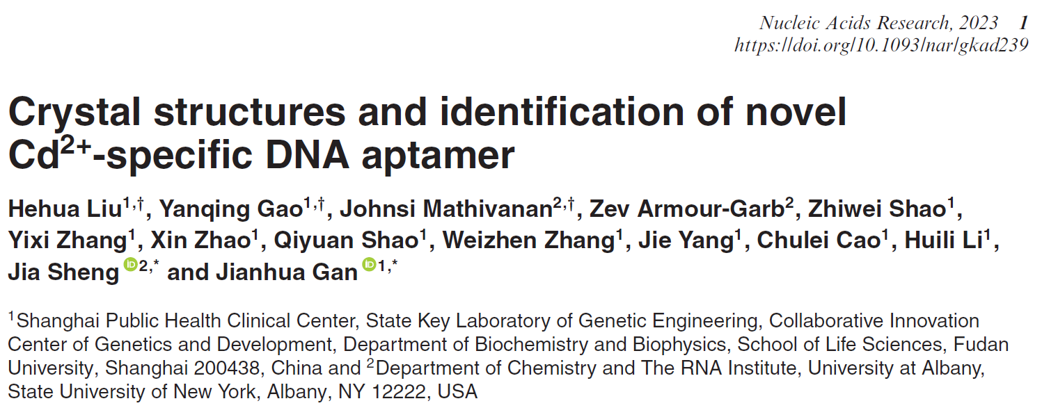 2023年4月4日,风车动漫 甘建华课题组和纽约州立大学盛佳课题组合作在Nucleic Acids Research上发表了题为“Crystal structures and identification of novel Cd2+-specific DNA aptamer”的文章,报道了Cd2+与四种DNA适配体复合物的晶体结构,首次阐明了DNA适配体识别Cd2+的结构基础。