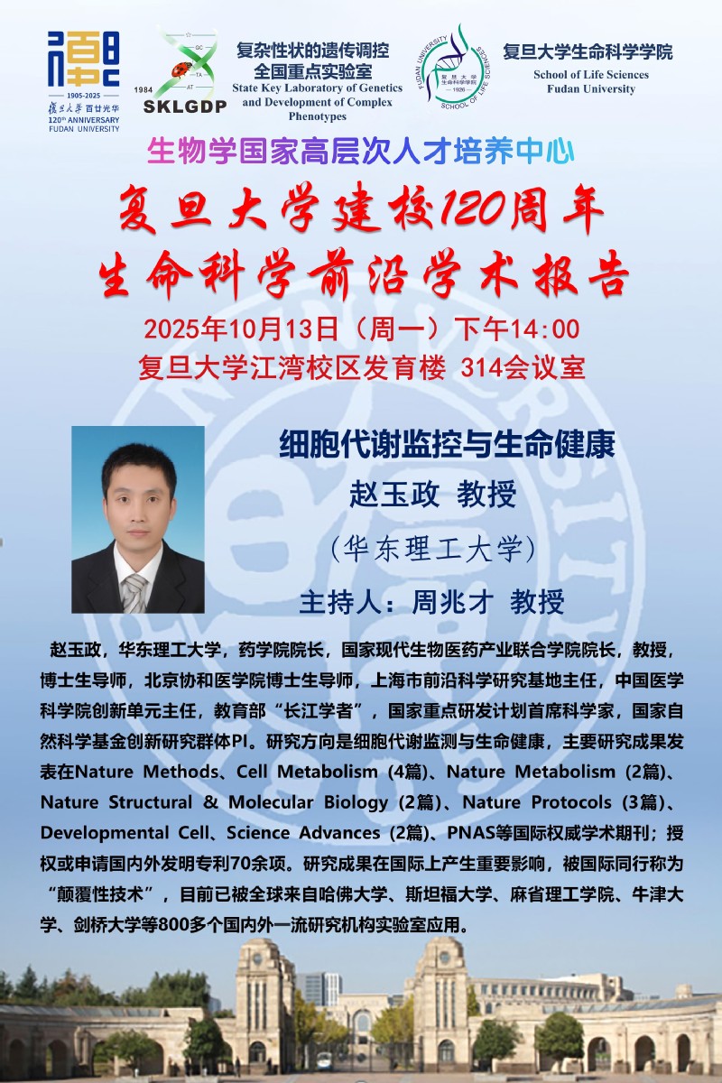 生命科学前沿学术报告-2025-10-13(周一) 下午14:00 ,赵玉政 教授 (华东理工大学)