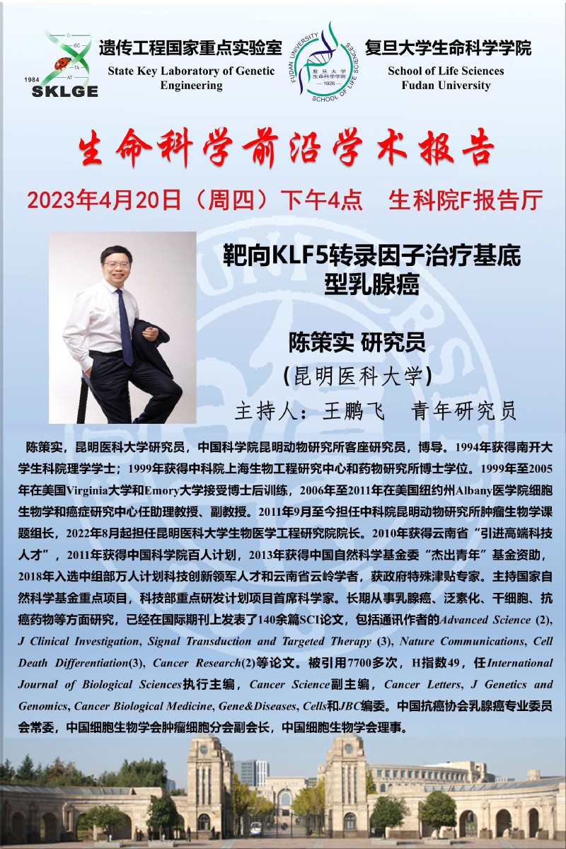 生命科学前沿学术报告-2023-4-20(周四)下午16:00,陈策实 研究员(昆明医科大学)