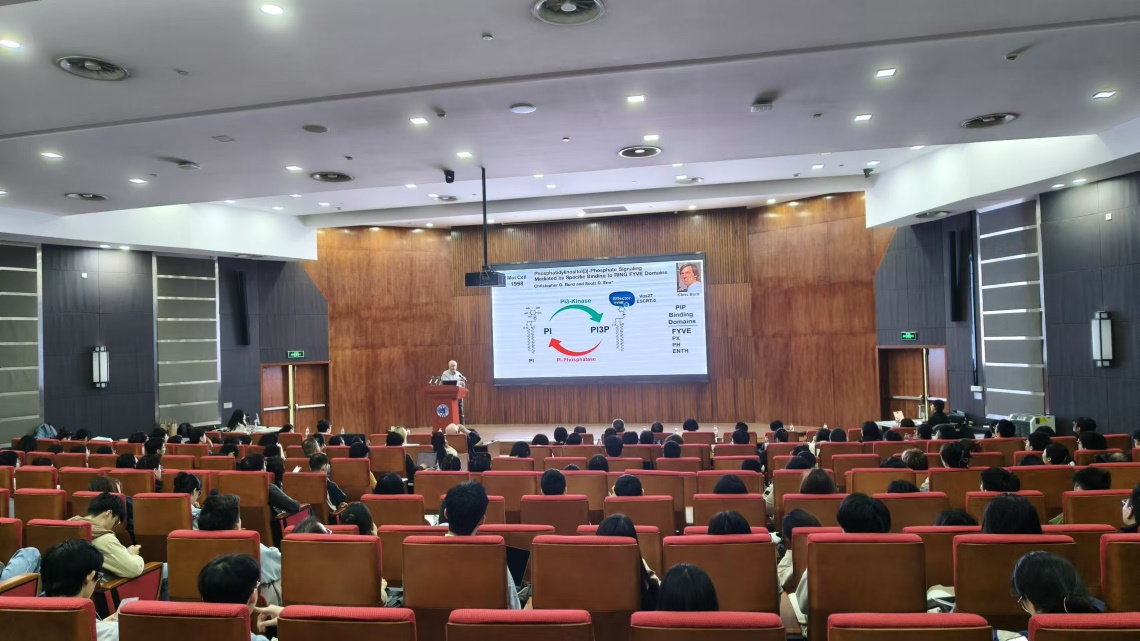 Scott D. EMR作了题为“The ESCRT Pathway: Sorting out membrane protein traffic to the lysosome”的精彩报告。他回顾了从1976年至今近50年的学术生涯,从哈佛大学和加州大学伯克利分校求学,到加州理工学院成立自己实验室,再到加州大学圣地亚哥分校担任霍华德·休斯医学研究所研究员,直到如今在康奈尔大学继续从事相关研究,全面梳理并总结了其在ESCRT通路指引蛋白质进入溶酶体过程中的功能和机制上的重要贡献。报告中,他讲述了三方面的系统工作:从液泡蛋白分选突变体的遗传筛选,到利用GFP标记的PIPS程序解析VPS34 PI3激酶复合物功能,再到VPS4突变体如何阻断多泡体(MVB)形成。这些发现向人们揭示了溶酶体有效清除细胞内废物的核心机制,更解释了ESCRT通路从细菌到酵母再到人类细胞中的普适作用。他还鼓励年轻学子未来属于大家,要勇于探索科学的无人区。