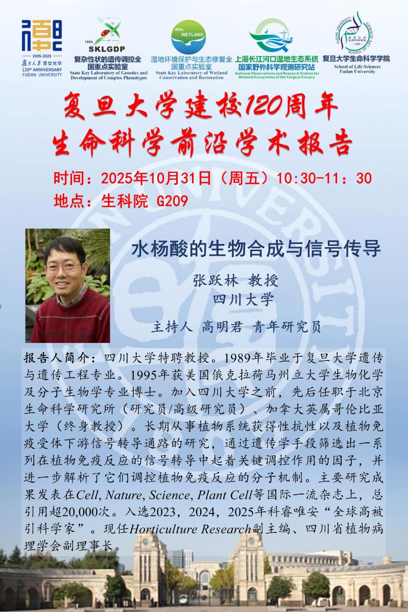 生命科学前沿学术报告-2025-10-31(周五) 上午10:30 ,张跃林 教授 四川大学