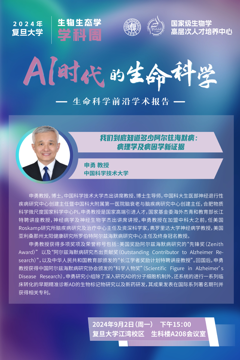 2024学科周--生命科学前沿学术报告--9月2日15:00 申勇教授 中国科学技术大学