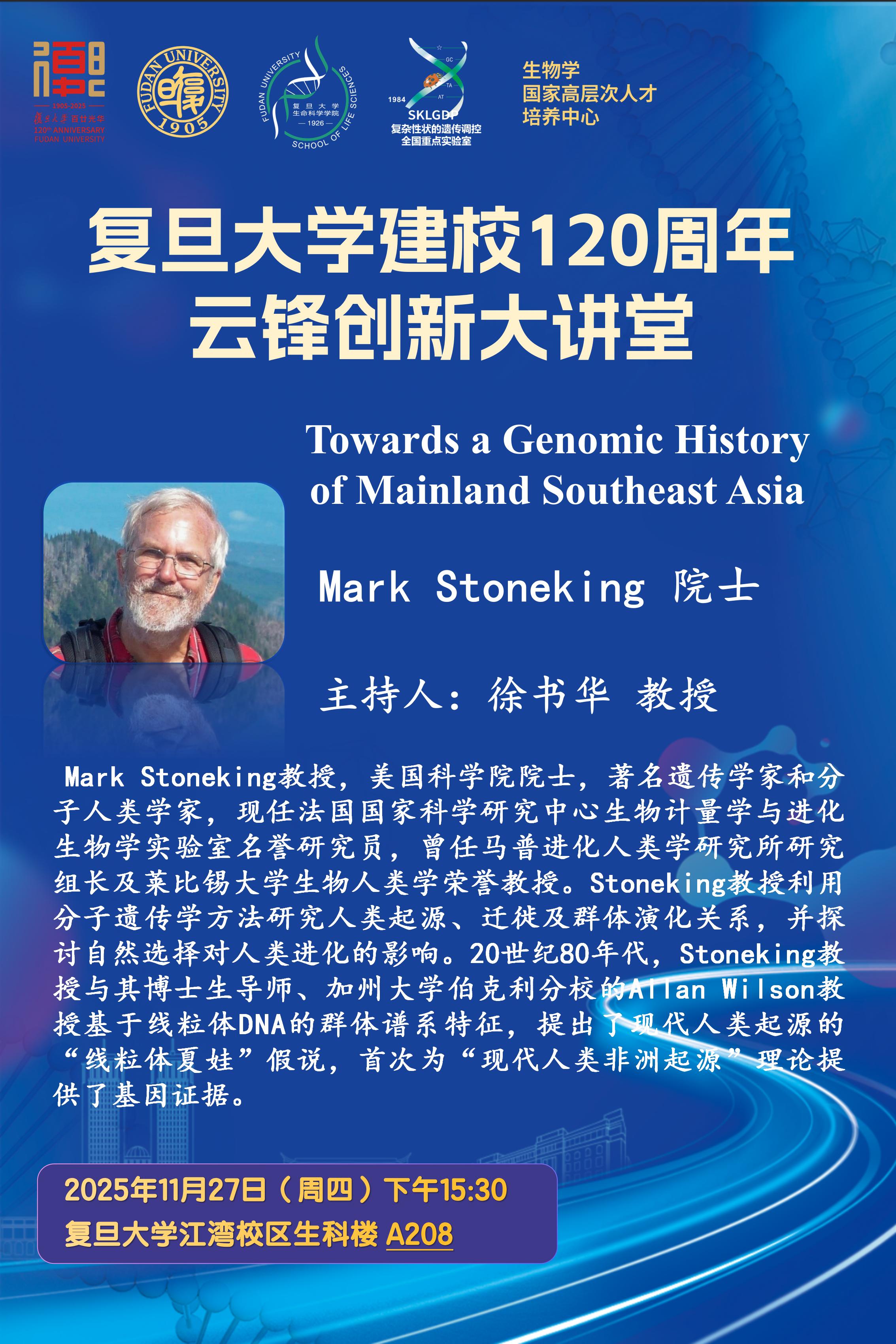 云锋创新大讲堂-2025-11-27(周四)15:30,Mark Stoneking 院士