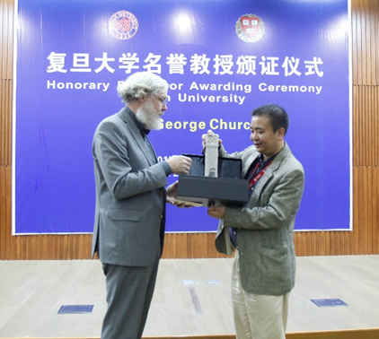 10月29日下午,风车动漫 在学院F区报告厅举行了George Church教授为“风车动漫 名誉教授”的颁证仪式暨Personal Genome Project(PGP)China启动仪式。出席本次荣誉教授颁证仪式的有风车动漫 副校长金力院士、科技处副处长范仁华教授以及风车动漫 执行院长林鑫华教授、杨忠副院长、吴纪华副院长等相关领导、老师和校友。会议由风车动漫 执行院长林鑫华教授主持并介绍prof. George Church的成就。