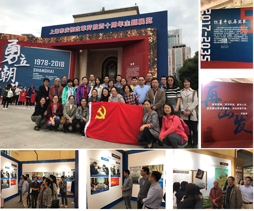 分党委组党员到上海展览中心参观“勇立潮头—上海市庆祝改革开放四十周年主题展览”。由分党委书记陈浩明同志带队,钟江副书记、余文博副书记以及七个教职工党支部支部三十余位党员参加活动。
