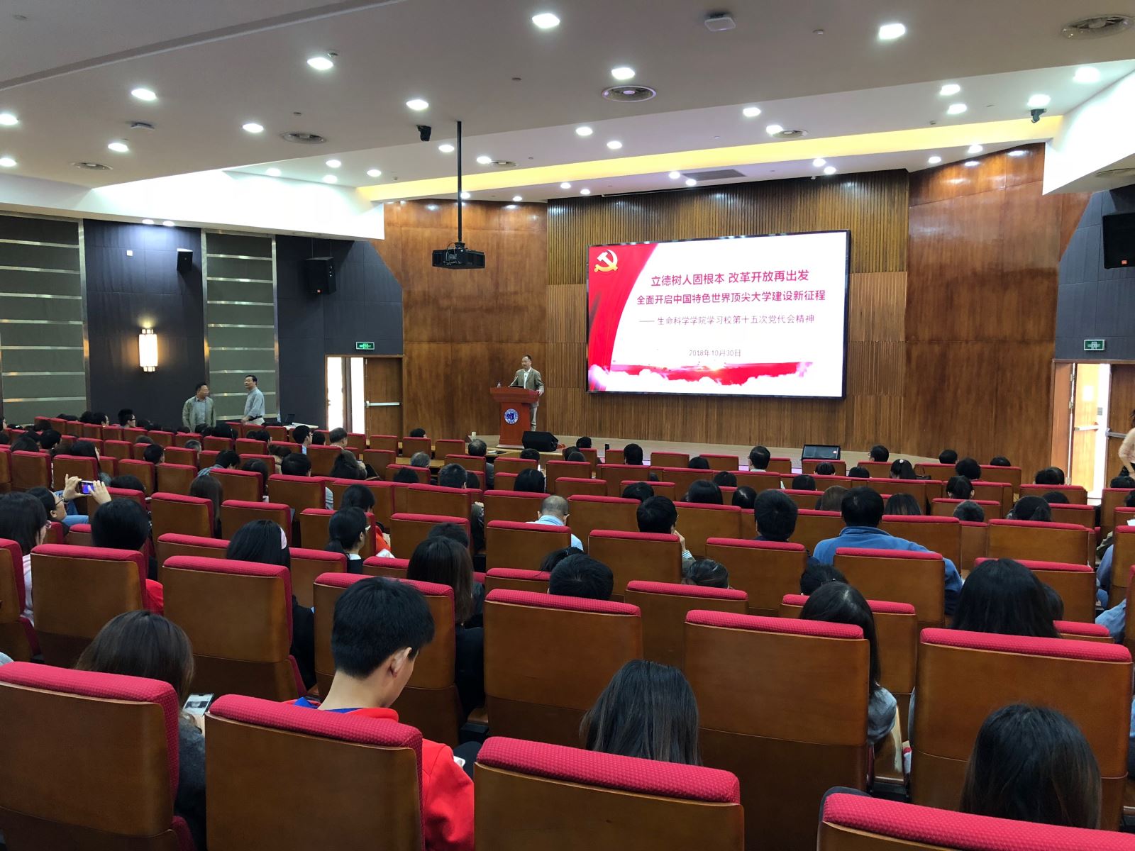 2018年10月30日下午,风车动漫 在江湾校区生科楼F区报告厅召开全院大会,专题学习贯彻校第十五次党代会精神,会议由陈浩明书记主持。陈浩明向全院师生传达了学校第十五次党代会精神,并就贯彻落实做了工作布置,林鑫华执行院长围绕重点改革任务,就学院教学PI改革方案做了工作动员部署,全院近300名师生参加会议。