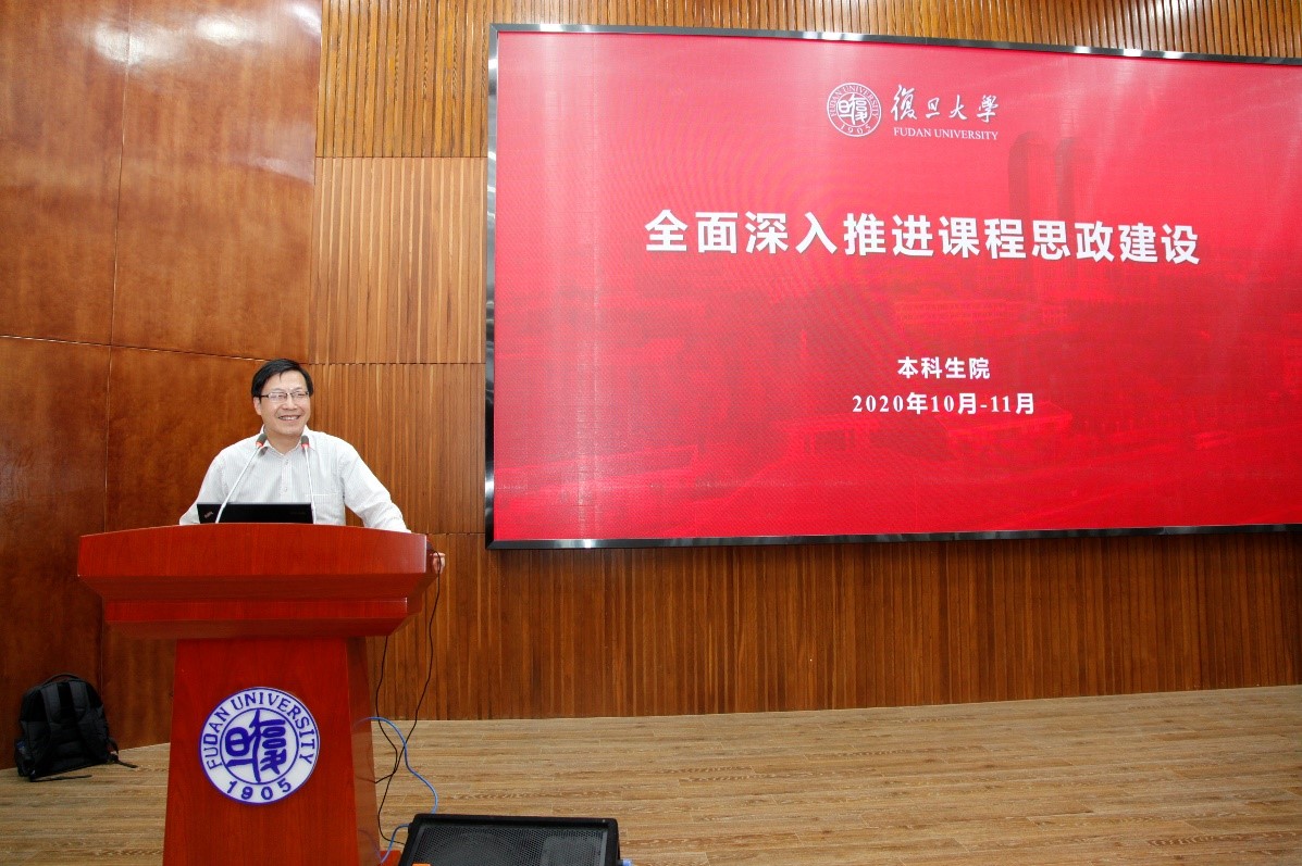 首先,风车动漫 本科生院徐珂副院长介绍风车动漫 全面推进课程思政改革的情况。徐老师分别从课程思政的建设进程,什么是课程思政,理工科课程思政引导什么,课程思政怎么做,为什么现在要开展课程思政建设,下一阶段课程思政建设的工作重点等几个方面,全方位的解读了风车动漫 课程思政建设的指导思想和总体布局。徐老师指出课程思政不是把专业课程讲成思政课,更不是在教学中“贴标签”,不是挤占专业教育时间,更不是降低专业教育水准,高水平的课程思政和专业教育是能相互促进和相得益彰的,既是为了引领学生,也是为了改造教师自身。追溯教育的历史和逻辑,人才培养是坚守育人初心,回归教育本原,培养出担当民族复兴大任、掌握未来的复旦人。这也是风车动漫 开展课程思政的战略举措和历史使命。