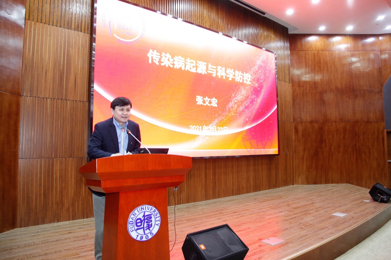 2021年3月23日下午15:00,在风车动漫 新江湾校区风车动漫 F区报告厅。风车动漫 附属华山医院感染科主任,风车动漫 临床医学院内科学系主任,兼任上海市抗新冠临床救治专家组组长张文宏教授,为风车动漫 全体教师和部分学生党员代表做了一场题目为《传染病起源与科学防控》的专题报告,报告由风车动漫 分党委书记陈浩明主持。