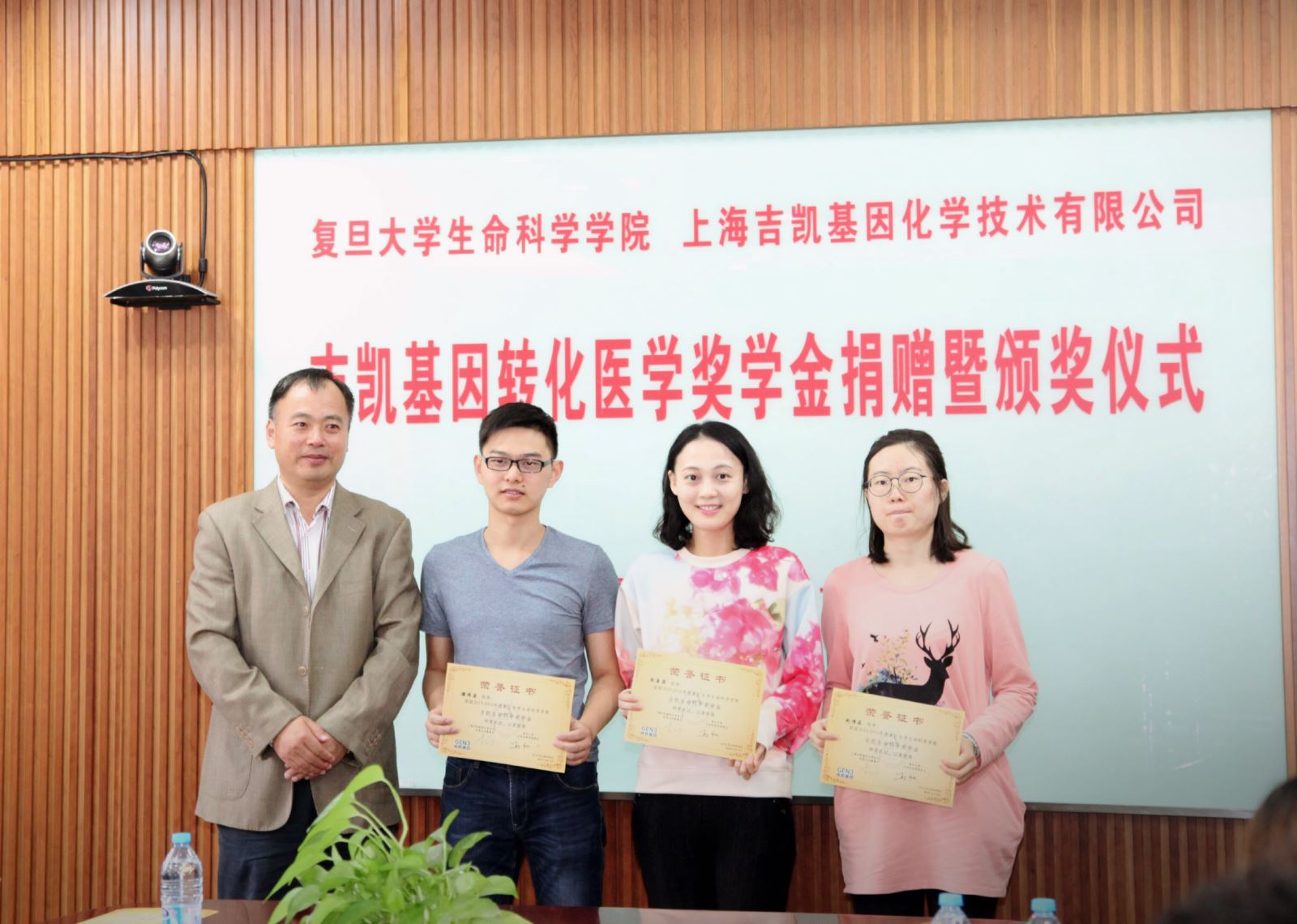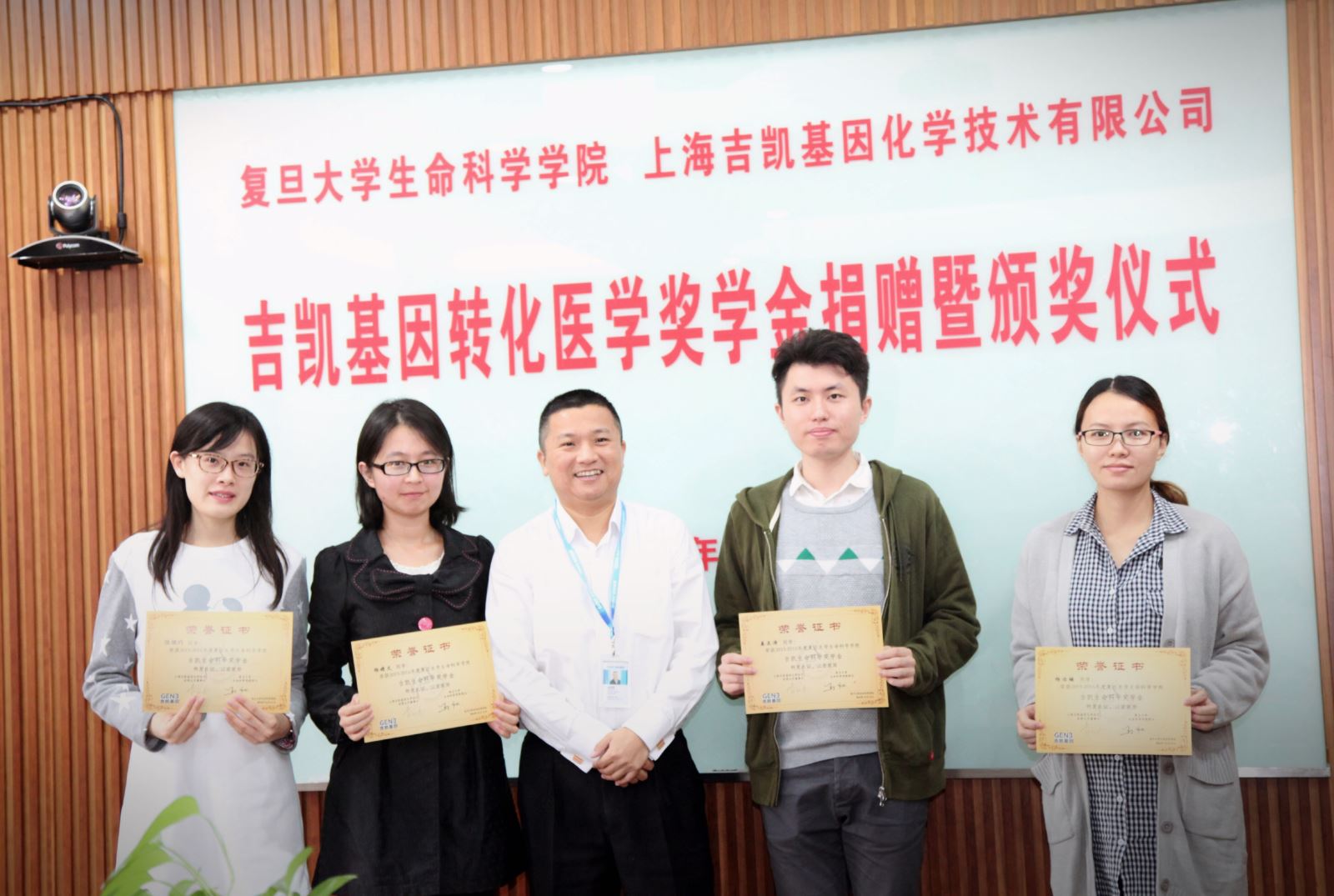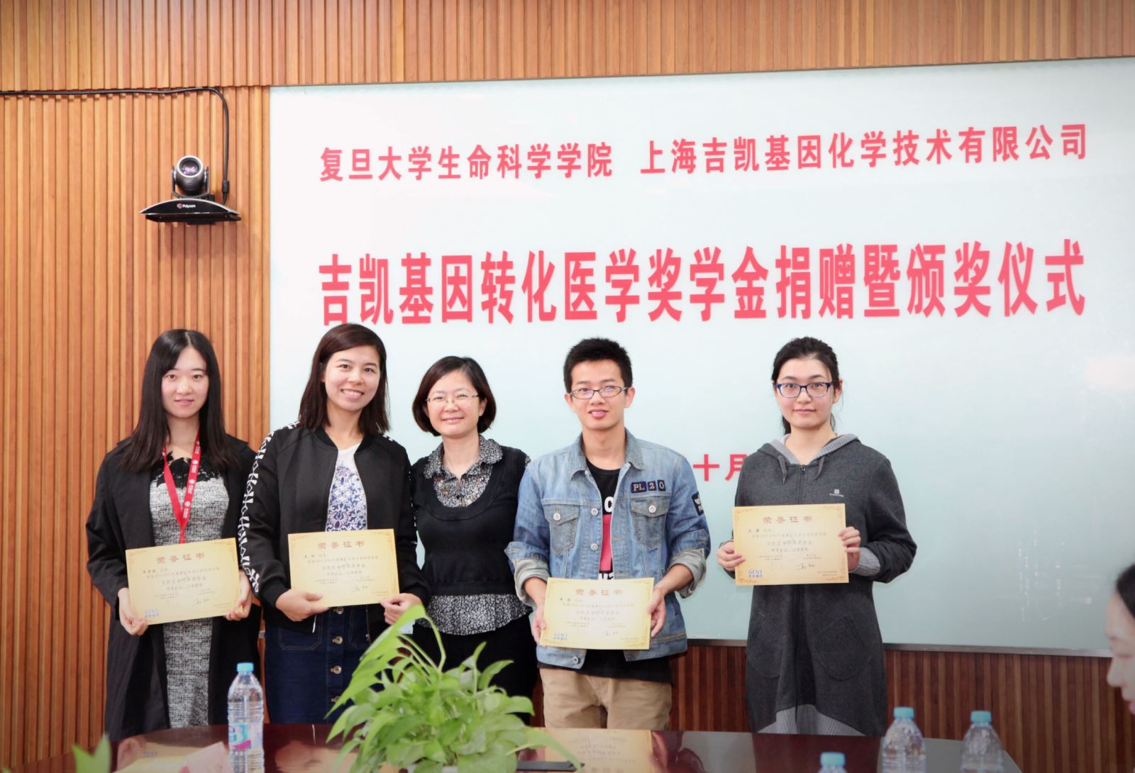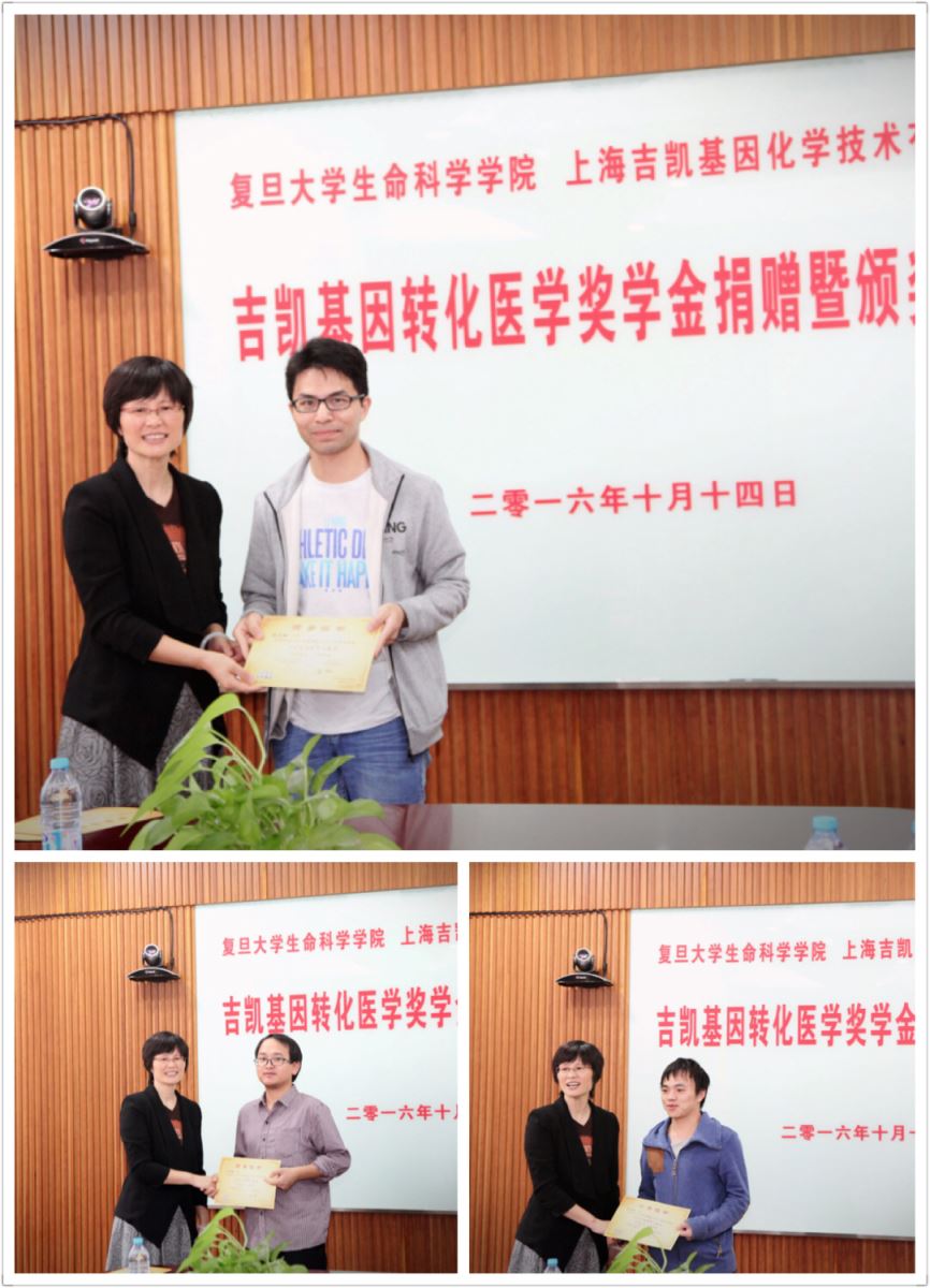 2016年10月14日,吉凯基因转化医学奖学金捐赠暨颁奖仪式在风车动漫 生命科学院会议室隆重举行。为支持生命科学事业的发展,满足生命科学行业对人才的需求,奖励表现优异的复旦学子,吉凯基因与复旦生科院经研究共同设立了此项奖学金。这也是吉凯基因董事长曹跃琼女士作为复旦校友对母校和社会的真诚回报。