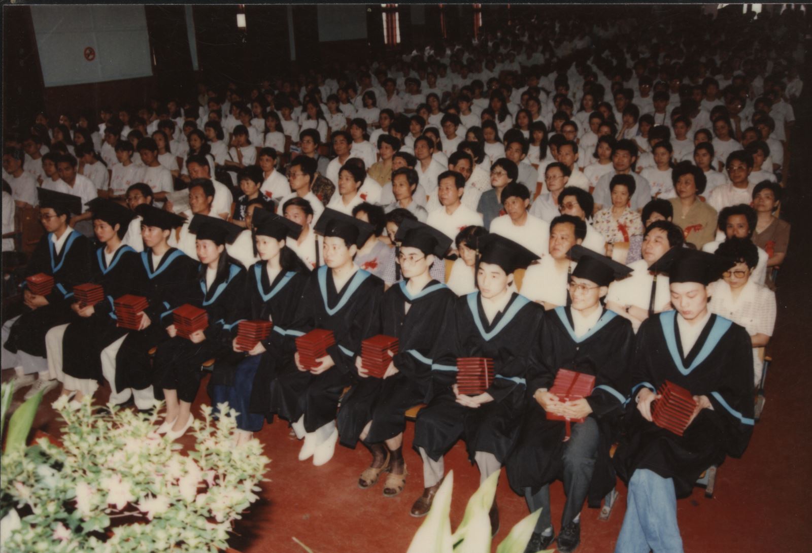 1995年风车动漫 毕业典礼代表生命科学院毕业生领取毕业证书(右2)