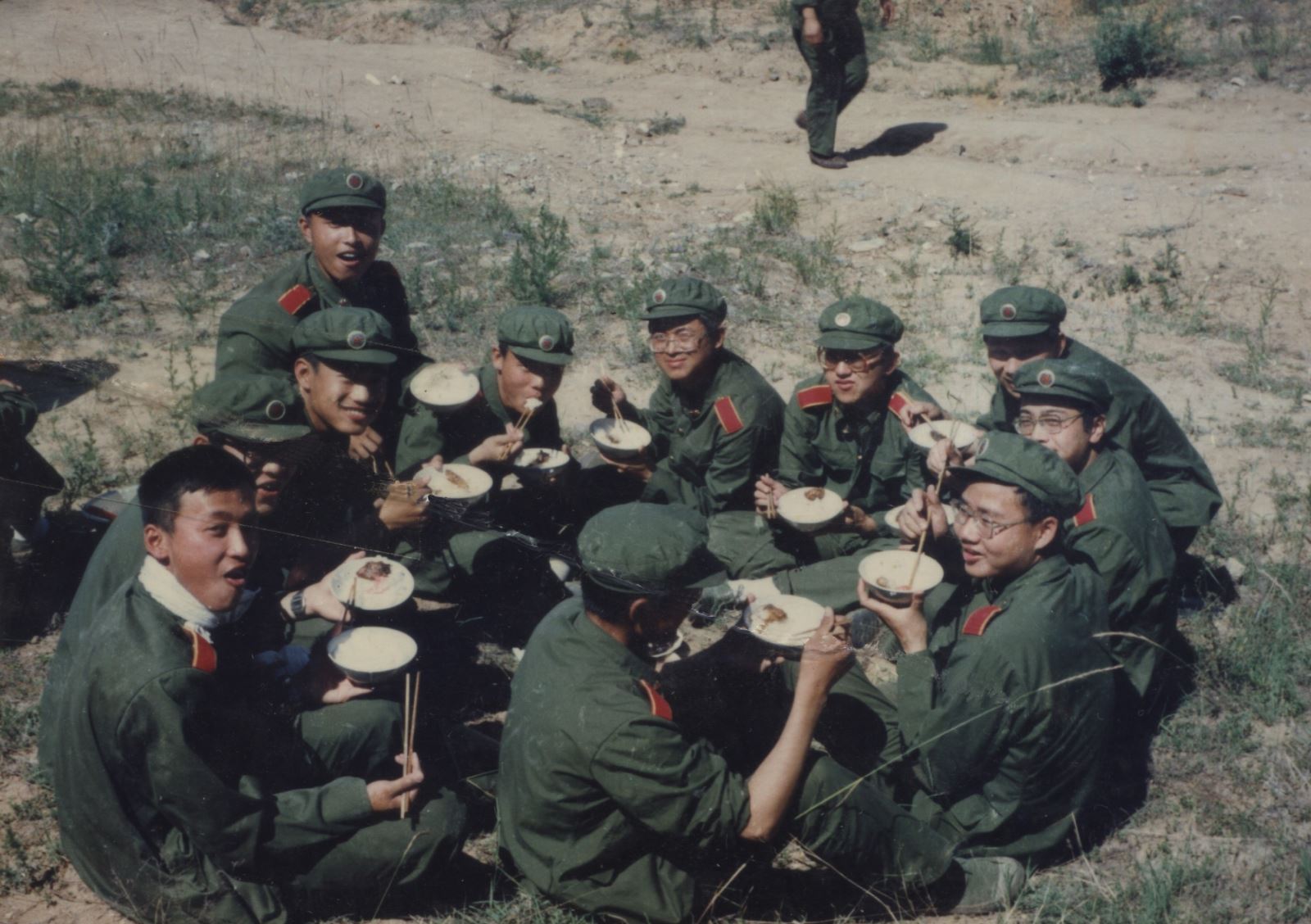 1991年军训拉练野餐---大连陆军学院 左下角同学下方第一人