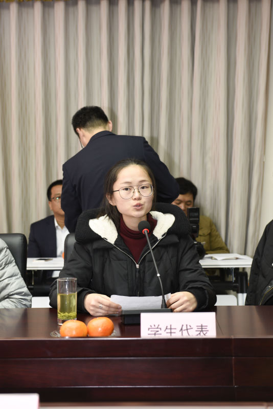 2016级直博生杨晶代表受助学生参加仪式并发言,她衷心感谢雪豹日化公司和学校对贫困学子的帮助,有如雪中送炭般的“助学金”,才给了大家实现仰望星空之梦想的勇气,才敢梦想着追求美好的未来。她说,今后,我们会像你们关心我们一样去关心生命中遇到的人,让他们知道,其实在你遇到困难的时候,背后有很多人和你站在一起。