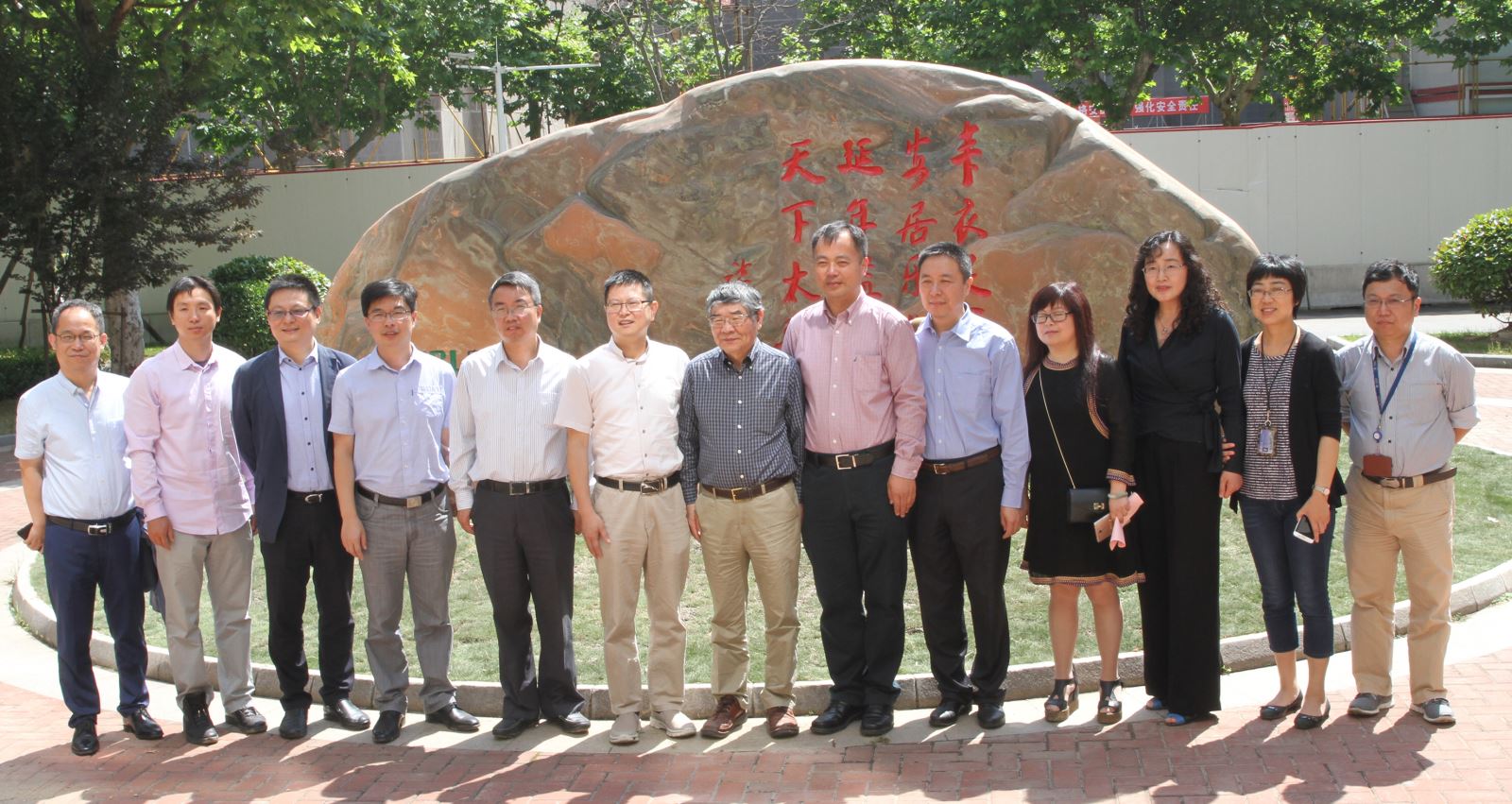 此后,全部来宾移步至院铭石落成处举行院铭石揭幕仪式,陈浩明书记和卞雪莲董事长及各位与会来宾共同为院铭石揭幕。