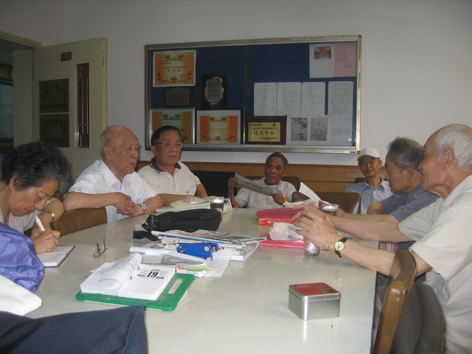 这位八十五岁的教授,他自称是生科院老人中排行前十。他召集一批老先生每周二上午相聚在学院的退休活动室(见图),议新闻,谈健康,聊家常。海阔天空,天 南地北。曾经在生物系当过总支书记的离休干部方老师,在一次老先生聚会上直言:“我看来看去,现在老同志中最可爱的还是程极济”。