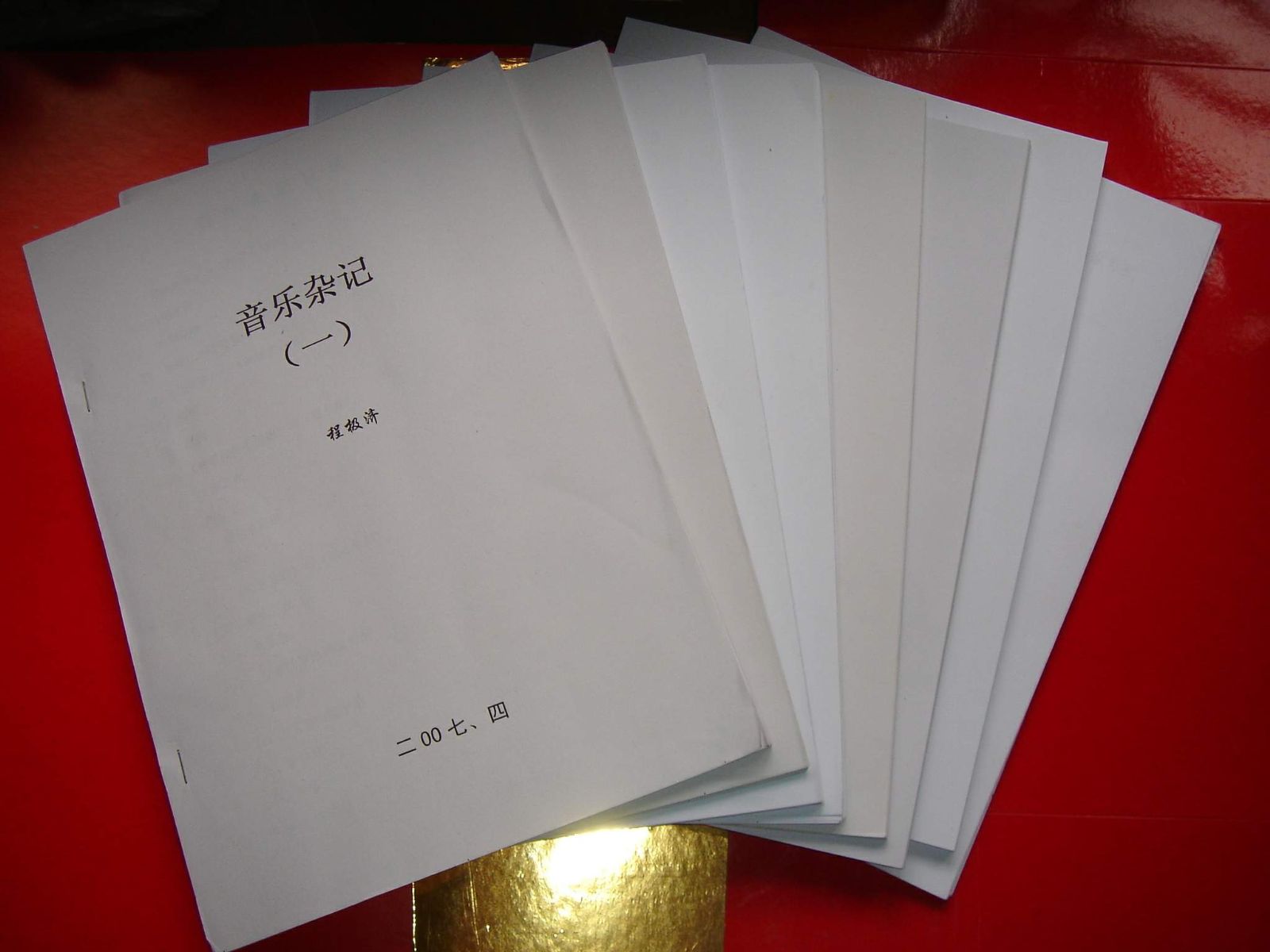 他又精心钻研音乐,连续写出8本音乐杂记(见图)。不仅对古典音乐深入剖析,又能欣赏现代流行乐曲。我常常喜欢跟他学唱和合唱,他不知自己是跨过80的耄 耋老人,居然想在卡拉OK中点唱“青藏高原”那样如此高亢的花腔高音,佩服佩服。在他那一档年龄段的老朋友称他“老顽童”,看来名不虚传,我们小字辈听了 肃然起敬。“老顽童”真好,我想暗暗学他,永葆青春。