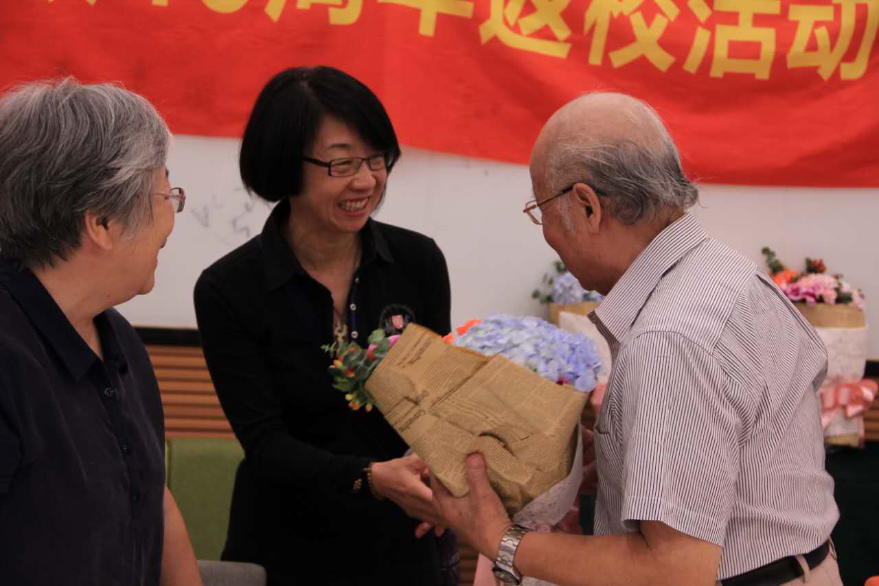 座谈会后,校友们向老师献上鲜花和“师恩永存”的锦旗,以此表达对老师当年辛勤培育自己的感激之情。