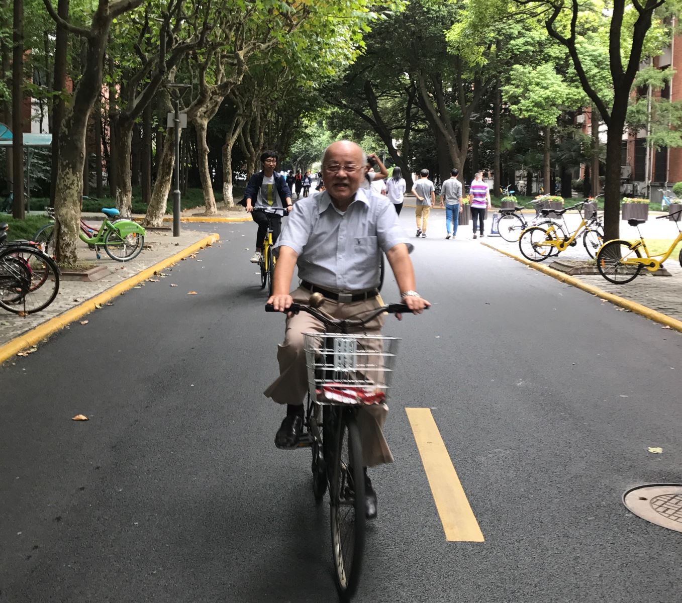 苏德明老师与77、78级校友就生命科学领域的诸多问题展开讨论,苏先生虽然已退休多年,但坚持锻炼、读报、新闻,看,86岁的他骑着自行车多么稳健!