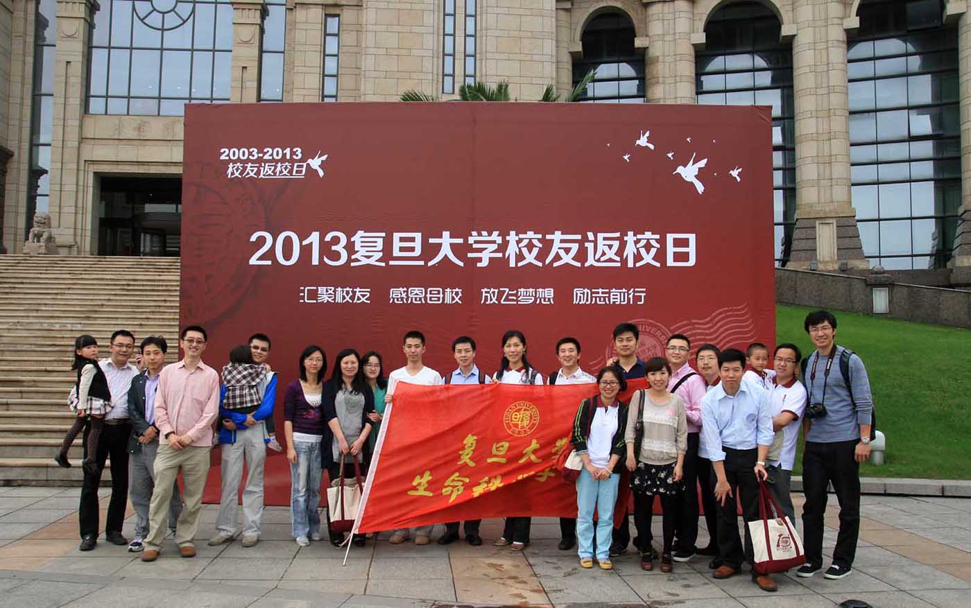 2013年 6月1日,我院2003届毕业生40余人参加了学校举办的“放飞梦想 励志前行”的校友返校日活动。当天,细雨霏霏,校友们带着复二代,兴致盎然地在江湾校区体会学校的发展,在邯郸校区回顾往昔的日子;分享十年的经历,畅想下一个十年。晚上,白天没能赶来的其他上海地区的校友陆续赶来参加在燕园宾馆的聚餐。学院陈浩明书记参加,席间校友们亲切交流,其乐融融。