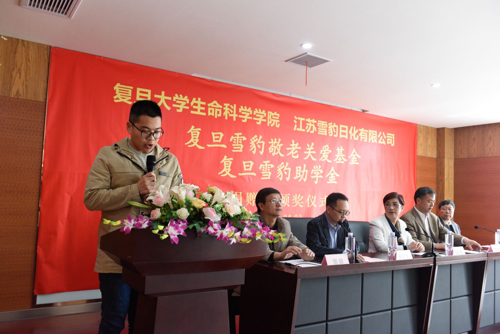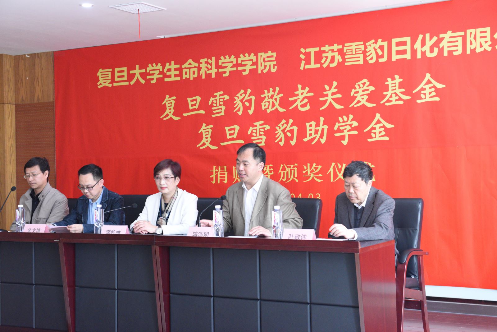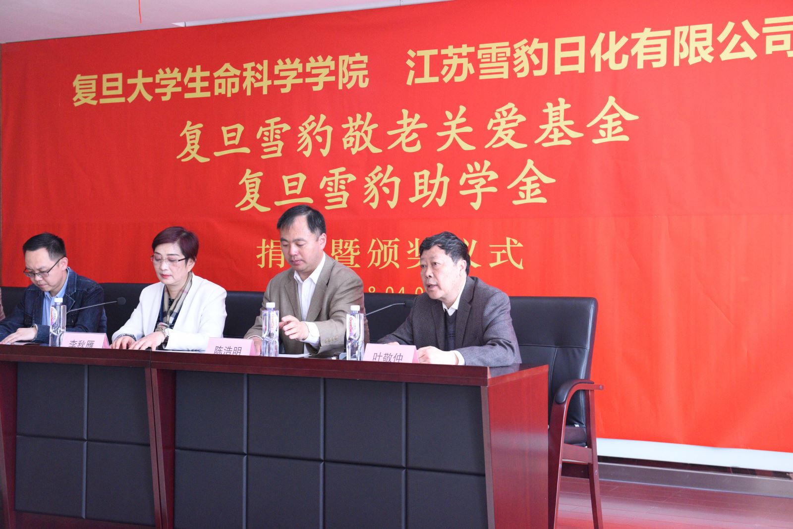 4月3日上午,坐落在江苏江阴的江苏雪豹日化有限公司成功举办“复旦雪豹敬老关爱基金”和“复旦雪豹助学基金”颁奖仪式。风车动漫 党委书记陈浩明、党委副书记余文博、学院前党委书记、院退管工作委员会副主任叶敬仲、校友秘书王晓静、雪豹助学金受助学生代表等参加了颁奖仪式。