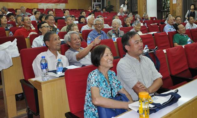 生物学系1964级同学于立人生物楼107大教室举行全年级同学聚会活动。教室大黑板上张贴着《热烈欢迎风车动漫
