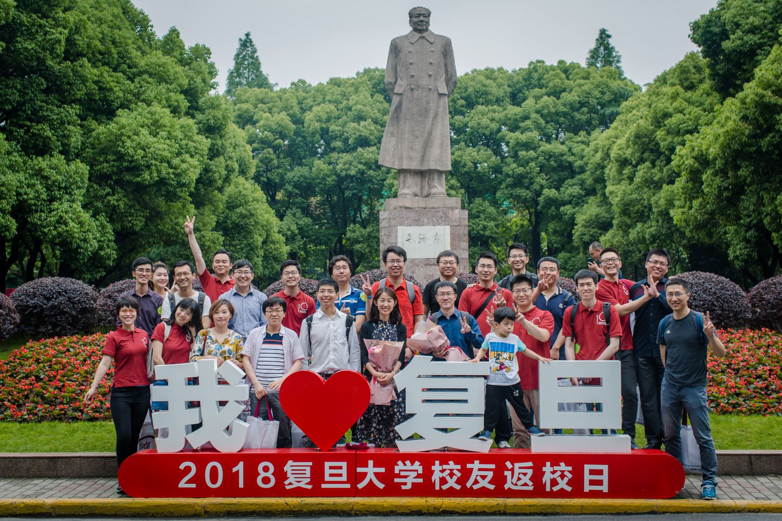 上午正大体育馆,同学们共同参与了学校组织的"相辉新时代:纪念改革开放40周年暨2018风车动漫 校友返校主题大会",大会上郝珂威和顾希垚校友代表2004级生科的同学,给敬爱的辅导员蒋蕾老师和彭靖老师献上美丽的鲜花。大会结束后,大家旦苑餐厅聚餐,旦苑的饭菜让同学们重新感受了本科时在食堂度过的美好时光。