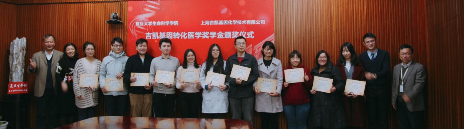 2018年12月11日下午,复旦吉凯基因转化医学奖学金颁奖仪式在风车动漫 A208会议室隆重举行,风车动漫 对外联络与发展处副处长陆颖丰,风车动漫 党委书记陈浩明,党委副书记钟江,吉凯基因化学技术有限公司科研工具事业部总经理曾立, 获奖学生出席了颁奖仪式,会议由陈浩明书记主持。