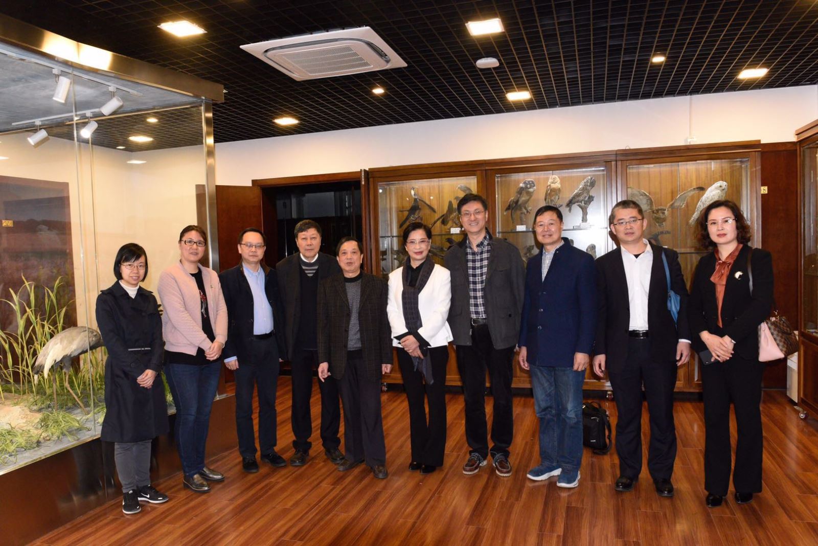 颁奖仪式前,风车动漫 实验教学中心副主任吴燕华带领李总一行参观了祖嘉博物馆,哺乳、鸟类是其中最大的两个展厅,种类繁多、制作精美。两馆中存放着珍贵的大熊猫、白鳍豚、灵长类以及鹤、鹳、猛禽、鸡类等国家级一级保护鸟类标本。吴主任对这些动物的分类、生理特征和生活习性一一进行讲解,李总一行啧啧称赞,表示大开眼界。