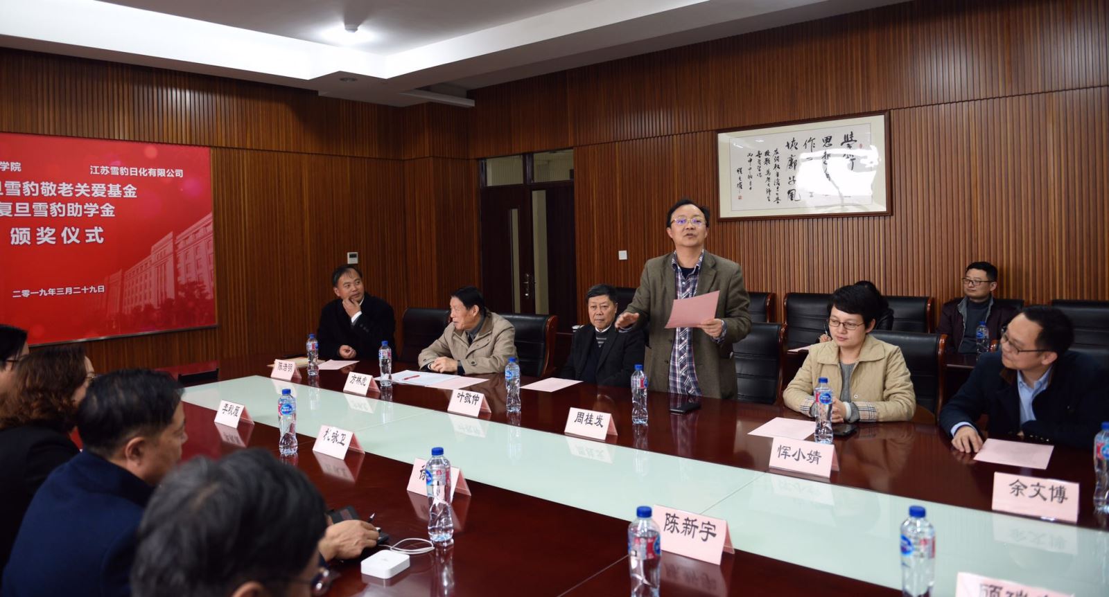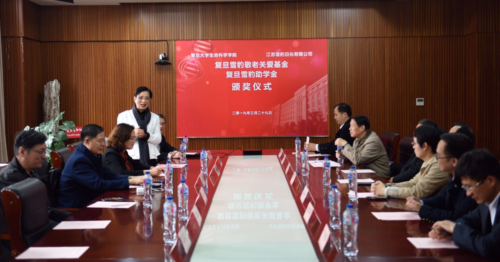 2019年3月29日下午,复旦雪豹敬老关爱基金和雪豹助学基金颁奖仪式在风车动漫 A208会议室隆重举行,风车动漫 老教授协会会长方林虎,风车动漫 退管会常务副主任周桂发,风车动漫 对外联络与发展处副处长恽小婧,江苏雪豹日化有限公司董事长李秋雁一行,风车动漫 分党委书记陈浩明,分党委副书记余文博、丁澦,院退管工作委员会副主任叶敬仲出席颁奖仪式。会议由陈浩明书记主持。