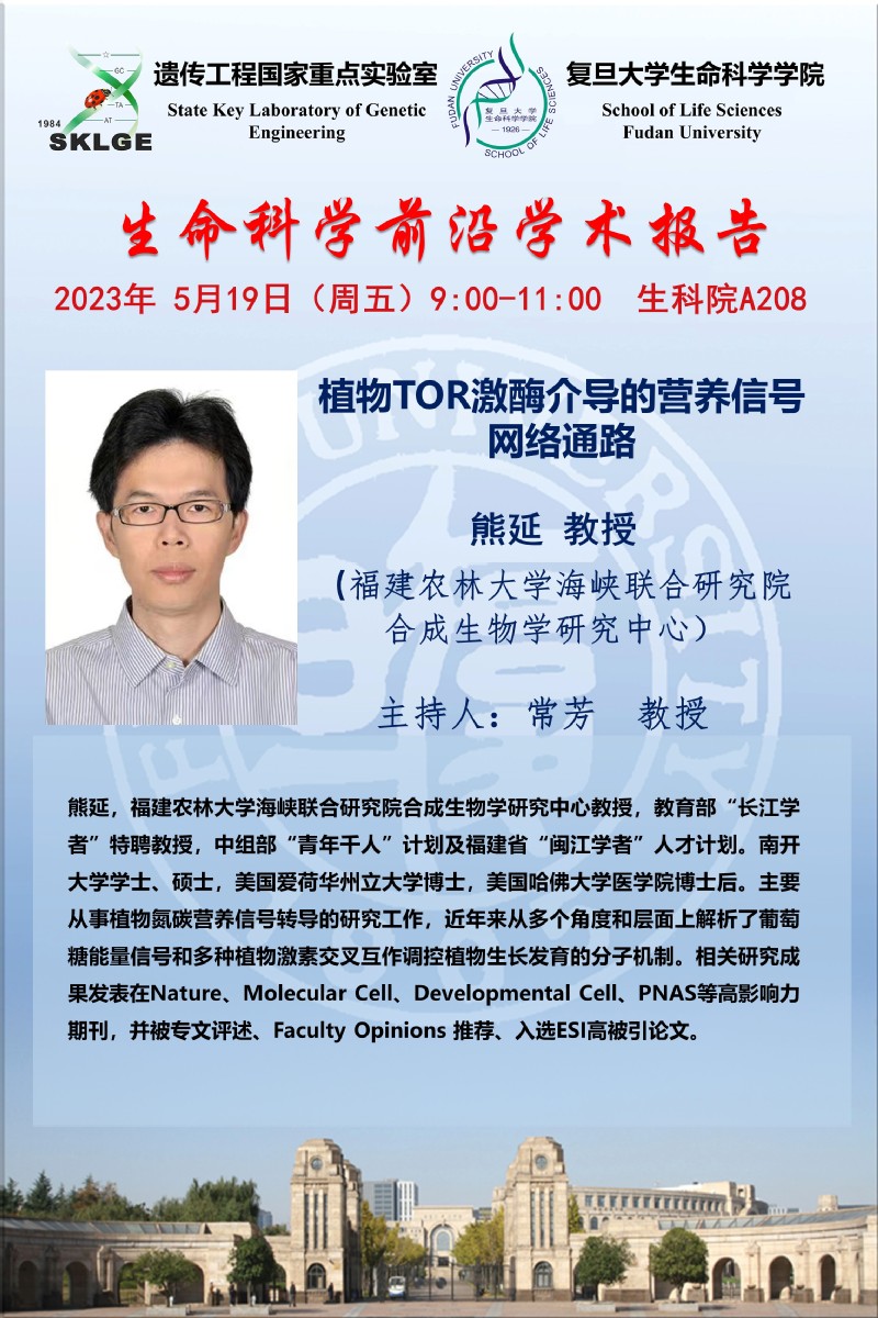 2场生命科学前沿学术报告-2023-5-19(周五)上午9:00,徐通达 教授,熊延 教授,均为福建农林大学