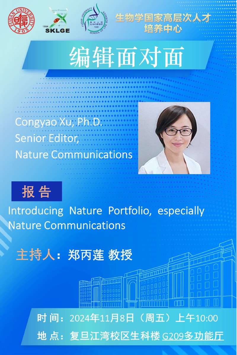 编辑面对面--2024-11-08(周五)上午10:00,Congyao Xu, Ph.D. Senior Editor, Nature Communications