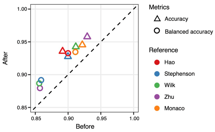 此外,作者还考虑到实际应用中有可能面对多套参考数据的情况。当多套参考可用时,作者开发了一种综合多套注释结果的策略,可以继续提高注释准确率3-5个百分点。这进一步增强了算法在实际应用中的价值。