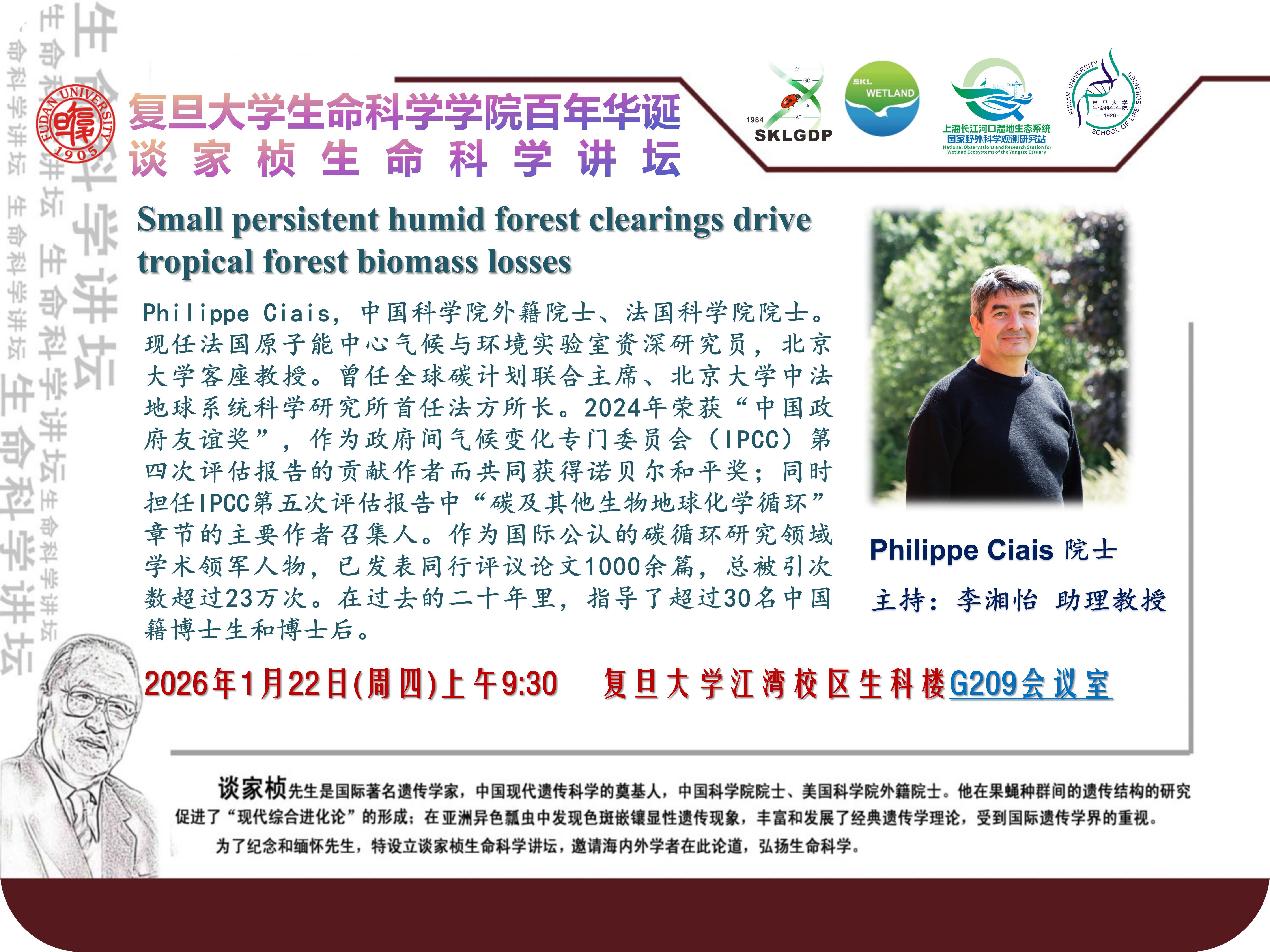 谈家桢生命科学讲坛-2026-1-22(周四)上午9:30,Philippe Ciais 院士(法国原子能中心气候与环境实验室)
