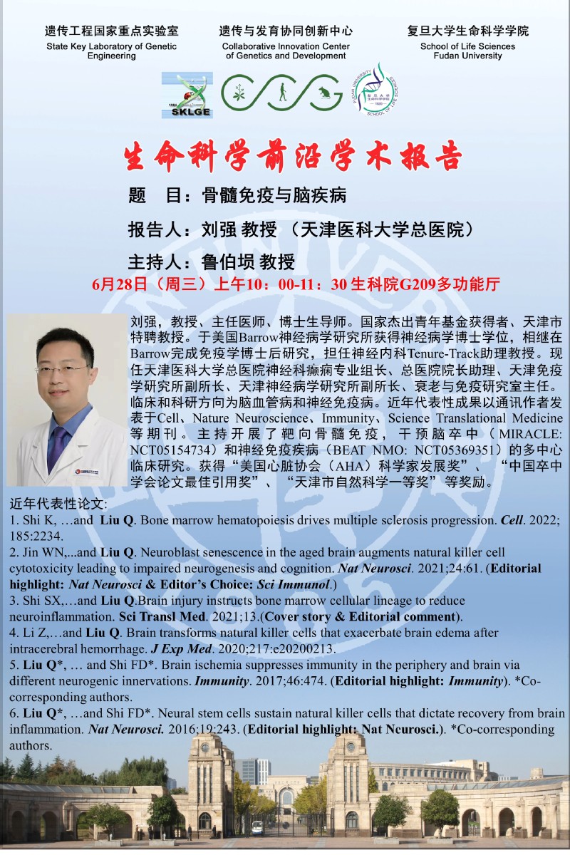 生命科学前沿学术报告-2023-06-28(周三)10:00,刘强 教授(天津医科大学总医院)