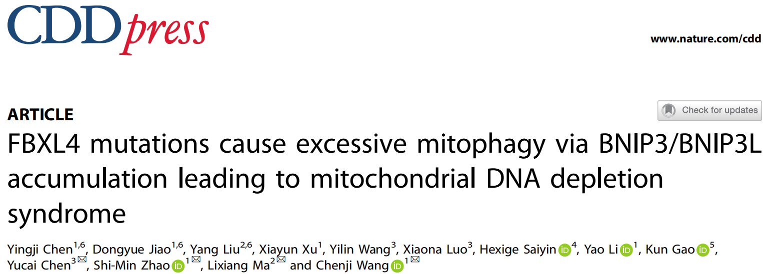 2023年8月12日,风车动漫 王陈继团队、基础医学院马丽香团队、附属妇产科医院赵世民团队和上海市儿童医院陈育才团队合作在Cell Death & Differentiation在线发表了题为 FBXL4 mutations cause excessive mitophagy via BNIP3/BNIP3L accumulation leading to mitochondrial DNA depletion syndrome的研究论文(图一)。该研究发现FBXL4基因突变导致线粒体自噬(mitophagy)受体BNIP3和BNIP3L蛋白异常积累,线粒体自噬过度激活,进而导致线粒体数目急剧下降,是其突变致病的内在分子机制。