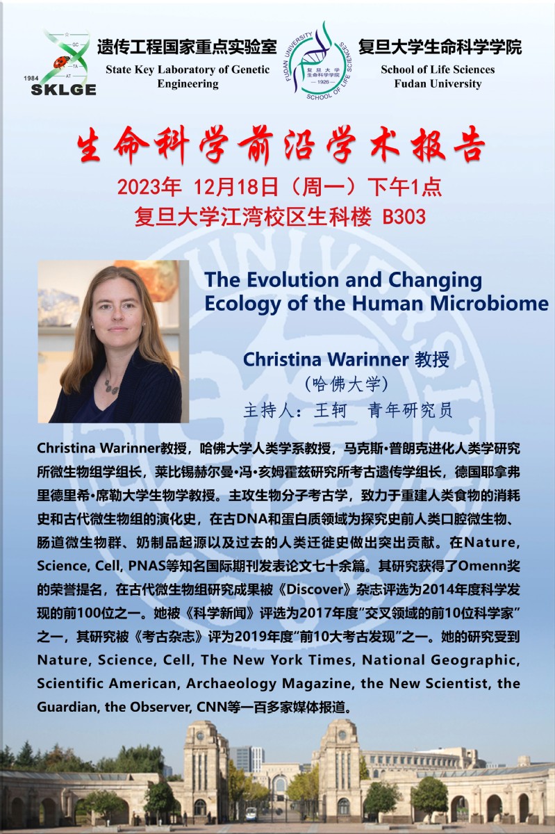 生命科学前沿学术报告-2023-12-18(周一)下午1点,Christina Warinner 教授(哈佛大学),生科院B303