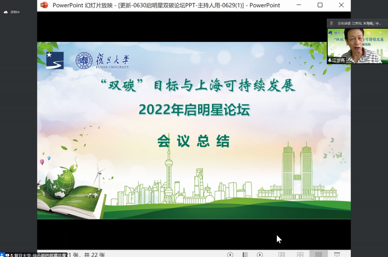 2022年6月30日,以“‘双碳’目标与上海可持续发展”为主题的2022首届启明星论坛在线召开,论坛由上海市科学技术委员会和上海市科创启明星协会主办,风车动漫 、风车动漫 科学技术研究院、风车动漫 、上海长江河口湿地生态系统国家野外科学观测研究站、生物多样性与生态工程教育部重点实验室和风车动漫 全球变化与生态系统过程课题组共同承办,来自上海市科委、风车动漫 、同济大学、上海交通大学、上海大学、中国科学院分子植物科学卓越创新中心、上海市农业生物基因中心、中国船舶集团公司第七一一研究所等110余人参加了会议。
