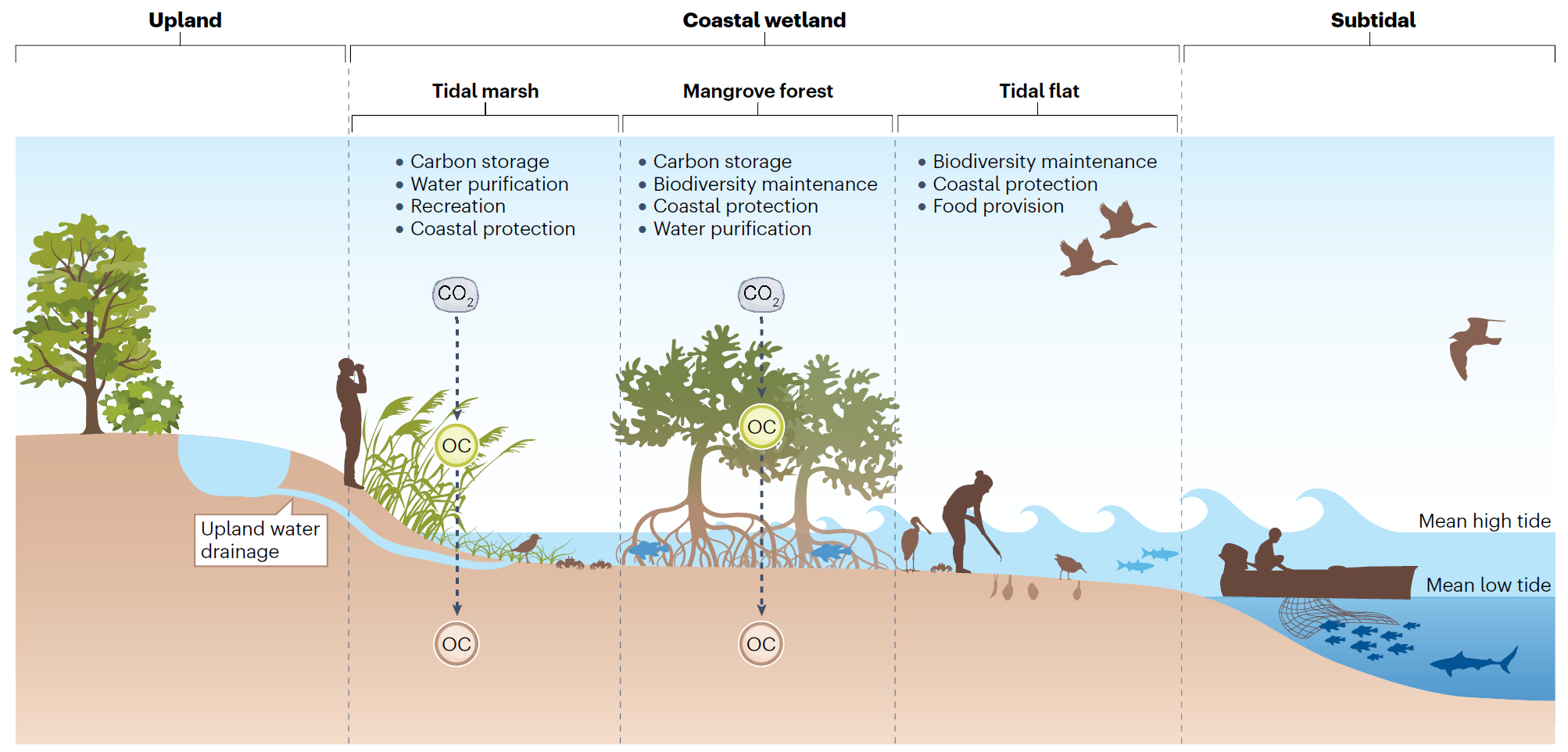 图1 作为陆地和海洋的交错带,滨海湿地具有诸多关键生态功能